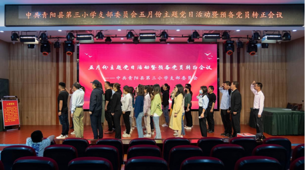 5月16日,青阳县第三小学党支部召开了五月份主题党日活动暨预备党员转正会议。