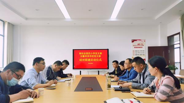 为深入探索党建工作新途径,促进民办学校党建工作的高质量发展,充分发挥市党建品牌学校党组织辐射引领作用,根据池州市委教体工委的部署安排,近日,青阳县第四小学党支部与安徽育英学校党支部开展了结对联建工作。