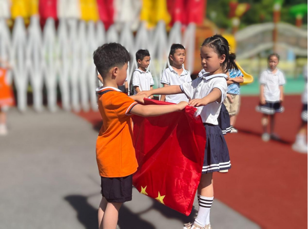 开展国旗护卫队交接仪式。即将毕业的哥哥姐姐将国旗交给中班的弟弟妹妹,这是庄严的交接、是精神的传递,是使命的传承,爱国主义情怀深深地厚植在每一位小朋友的心中!