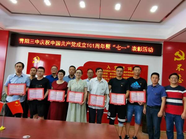 校党总支书记在总结讲话中对受表彰的党员们表示祝贺。他说,党员教师是全体教师的先锋模范,要有更强的责任感与使命感;党员教师的日常工作要服务于学校的整体发展与长远发展,为提升青阳三中教育品牌的内涵与声誉多做贡献。