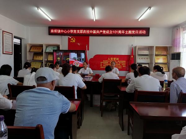 在中国共产党成立101周年来临之际,为进一步引导广大党员教师深入学习党的光辉历史,全面领悟党的百年奋斗重大成就和历史经验,继承和弘扬党的优良传统,并自觉转化为干事创业的强大精神动力,7月1日,庙前镇中心小学党支部开展庆祝中国共产党成立101周年主题党日活动。