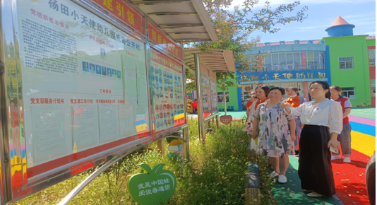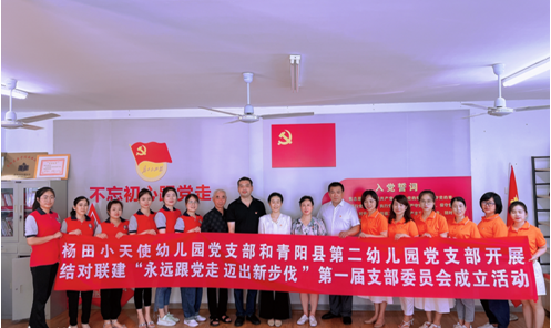 2022年8月6日上午,杨田小天使幼儿园与县第二幼儿园两个党支部开展“永远跟党走 迈出新步伐”结对联建主题党日活动暨杨田小天使幼儿园第一届支部委员会成立大会。县委教体工委组织科负责人、教体局王肇麟同志和县第二幼儿园党支部书记到场指导。