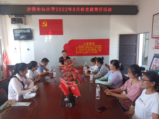 8月9日上午,沙济中心小学党支部开展了8月份“主题党日”活动,全体党员及入党积极分子参加了此次活动,党支部书记主持会议。