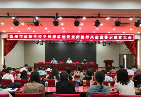 29日上午,池州市旅游学校党总支在校多功能厅召开党风廉政建设暨师德师风建设警示教育大会。会议重点学习了《习近平谈治国理政》第四卷——新时代党和人民奋进的必由之路,青阳县委办公室印发《关于推动党史学习教育常态化长效化的实施方案》的通知,党风廉政建设警示材料和师德师风建设警示材料。校党总支书记、校长陶春同志作总结讲话,他肯定了自2022年春季党风廉政建设与师德师风建设动员会以来,学校作风建设取得一定成效,表现为:身边的模范影响力越来越大,工作的热情显著提升,规矩意识明显增强。他提醒大家要始终保持政治上的警醒与生活上的警示,作风建设永远在路上!